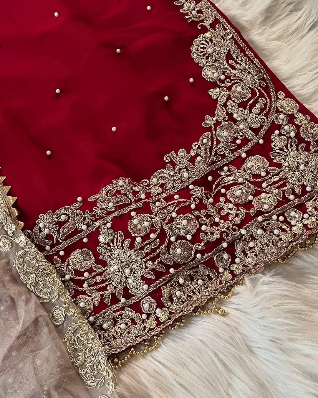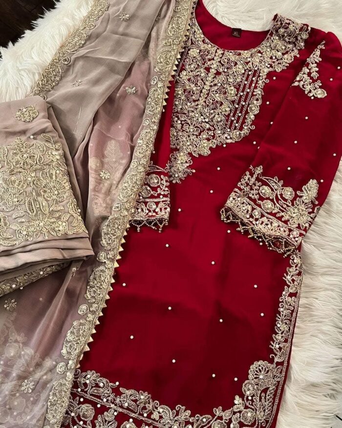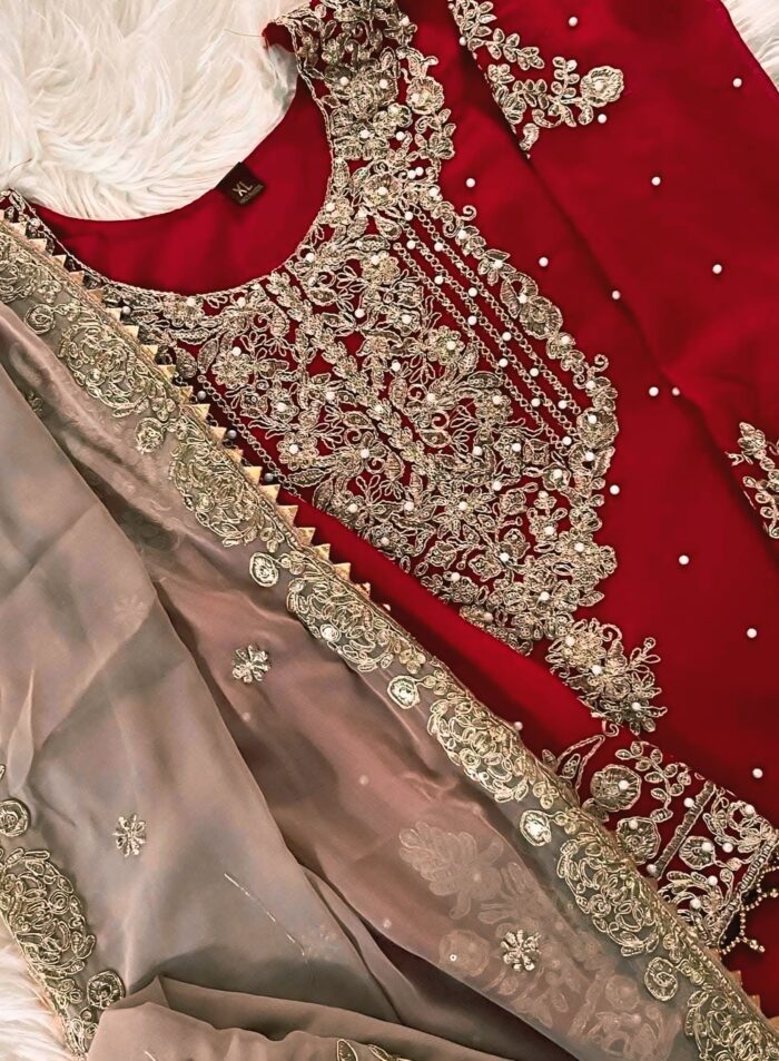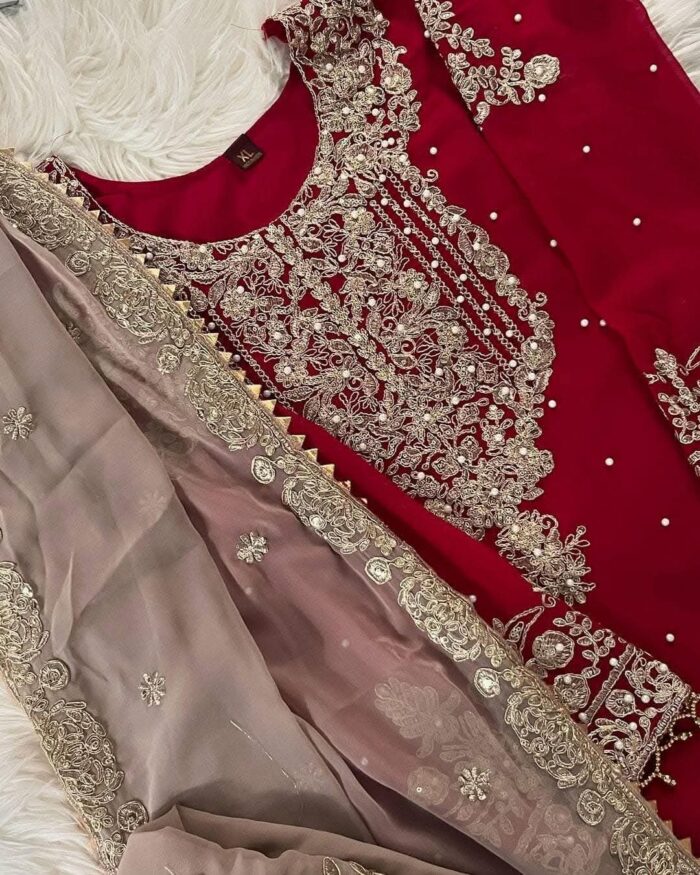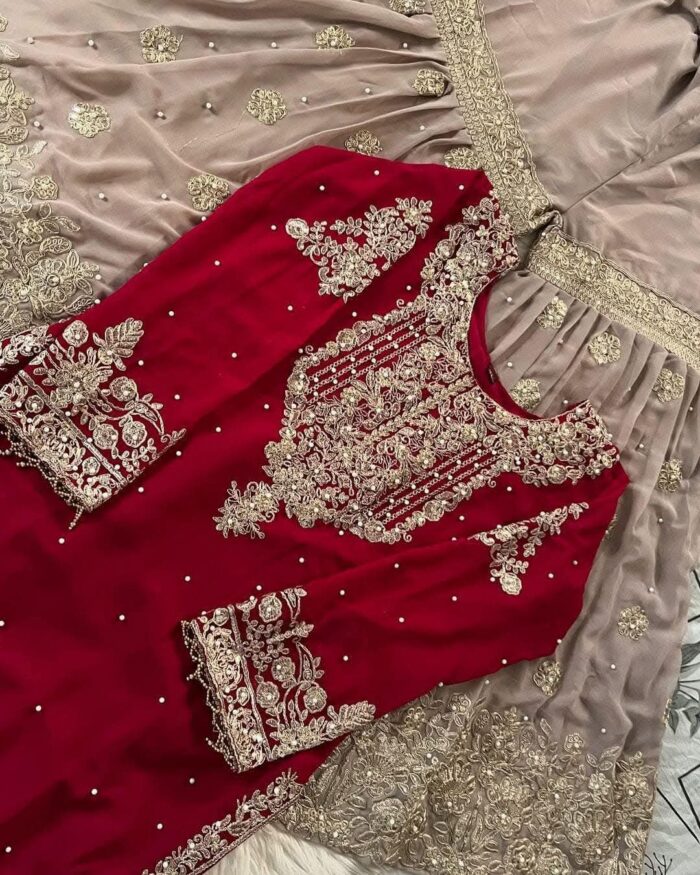 Featues exquisite sequence embroidery and pearl work
